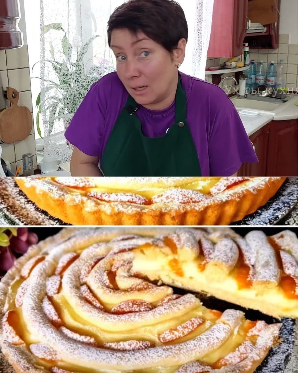 Смажьте форму и выложите большую часть теста. Оно должно покрыть низ и стороны формы. Вылейте сверху крем, выложите абрикосы и закройте второй половиной теста. После этого отправьте в духовку на 45 минут.