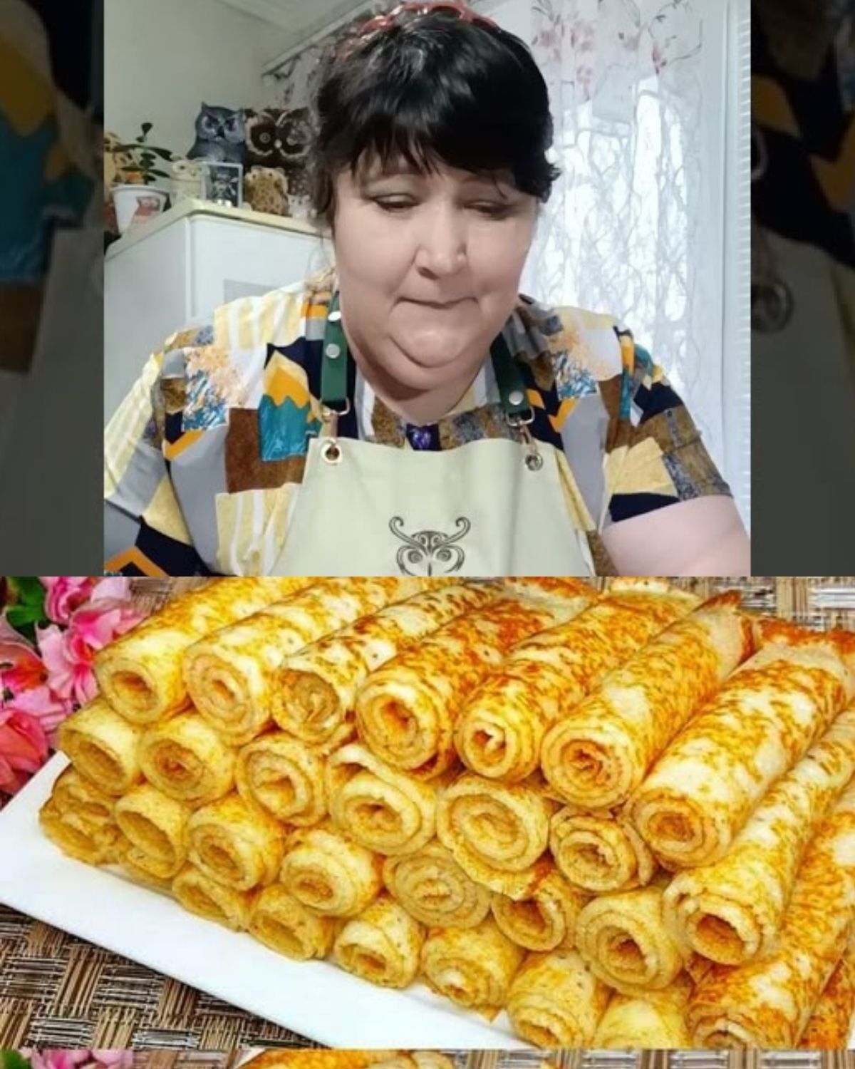 Розрізаю млинці навпіл і скручую трубочками, смачного!